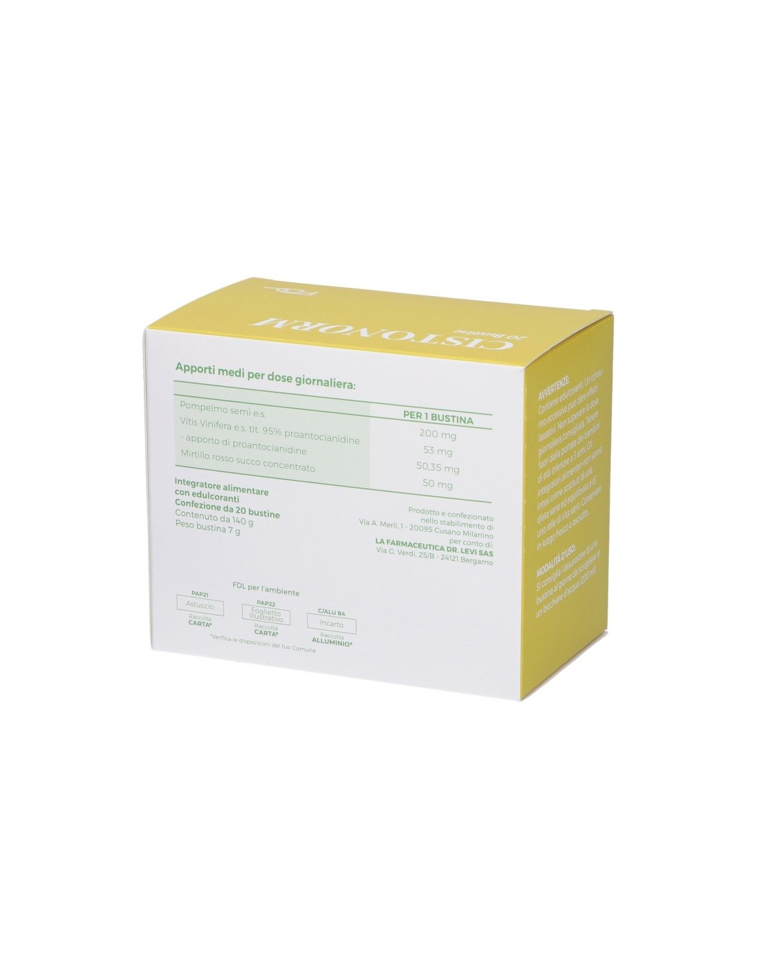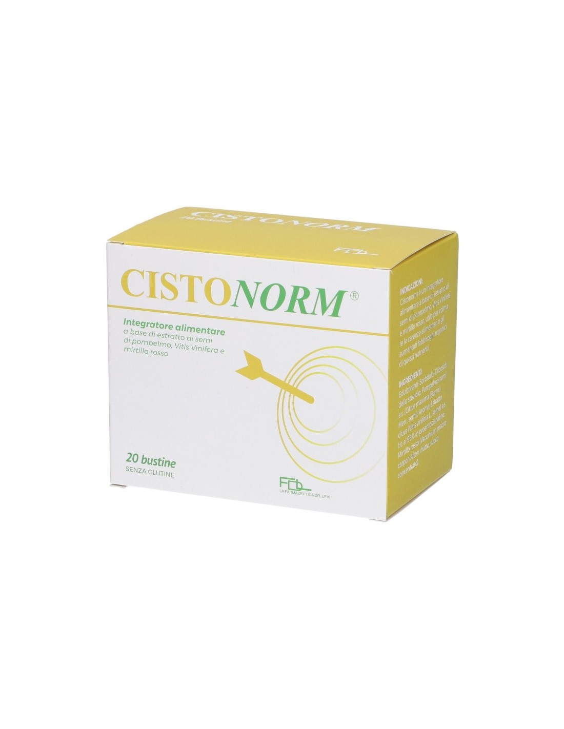 Integratore alimentare con estratti titolati e standardizzati. Cistonorm rappresenta l'ideale antisettico naturale nella profilassi delle infezioni urinarie non complicate. Integra in un unico prodotto le riconosciute proprietà delle proantocianidine OPC (mirtillo rosso e vitis vinifera) nel prevenire l'adesione batterica all'urotelio e il forte potere antibatterico a largo spettro d'azione dell'estratto di semi di pompelmo (GSE).