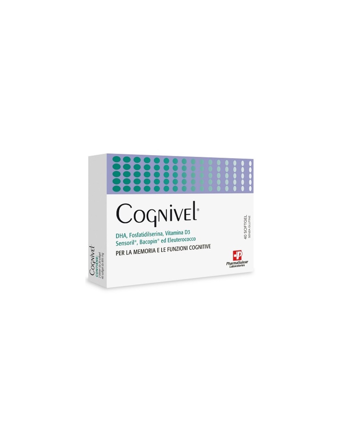 Integratore alimentare composto da DHA, fosfatidilserina, vitamina D3, sensoril, bacopin ed eleuterococco.