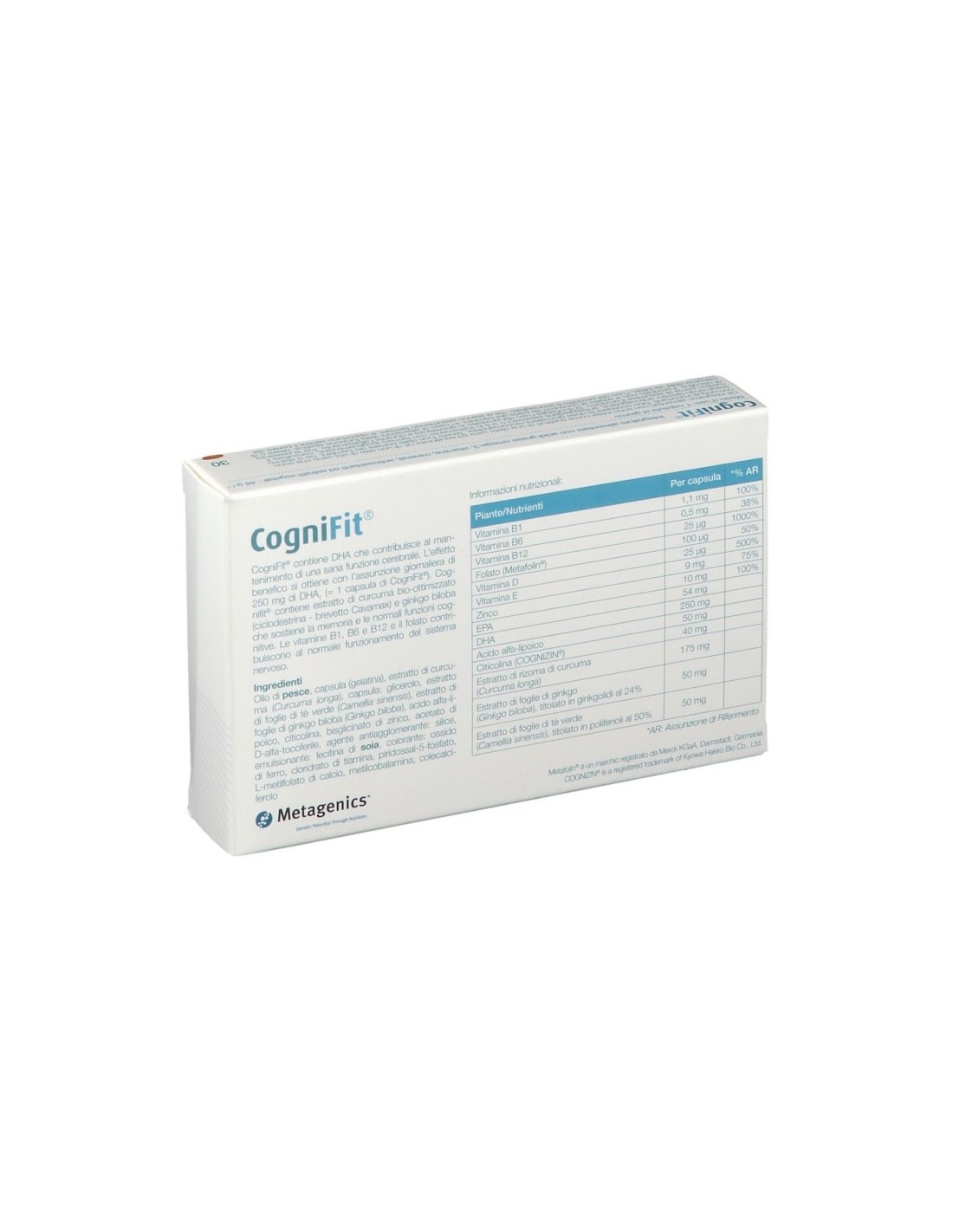 CogniFit contiene estratto di curcuma (ciclodestrina - brevetto Cavamax) e Ginkgo biloba che sostiene la memoria e le normali funzioni cognitive.