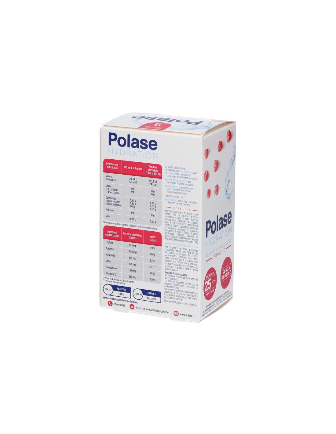 Polase hydration è un'integratore alimentare in una nuova formula con alto contenuto di Vitamina C e 5 Minerali (Potassio, Magnesio, Fosforo, Sodio e Manganese), per reintegrare le perdite di sali minerali avvenute con l’attività fisica. Un alleato per reidratarti e reintegrare con gusto.