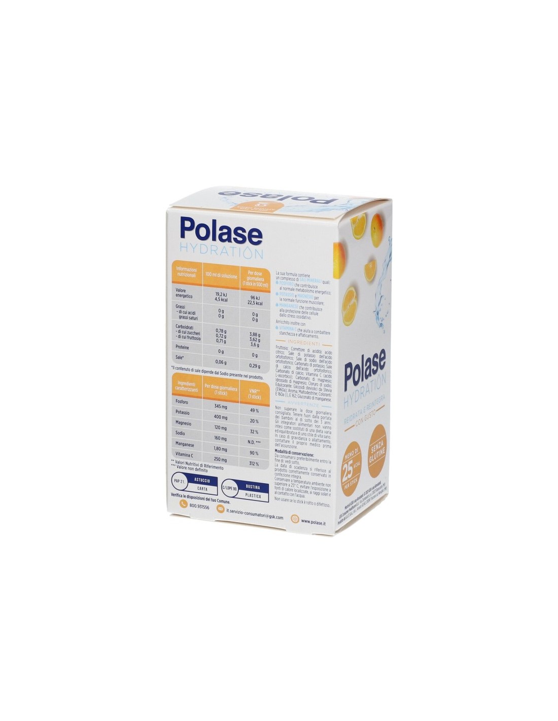Polase hydration è un'integratore alimentare in una nuova formula con alto contenuto di Vitamina C e 5 Minerali (Potassio, Magnesio, Fosforo, Sodio e Manganese), per reintegrare le perdite di sali minerali avvenute con l’attività fisica.
