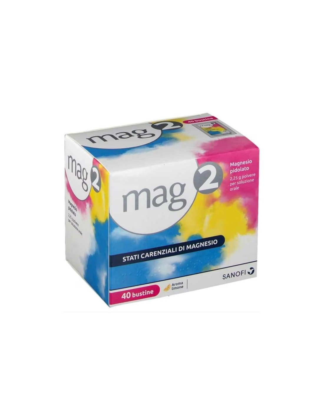 MAG2 in bustine si presenta come polvere per soluzione orale, da sciogliere in acqua.