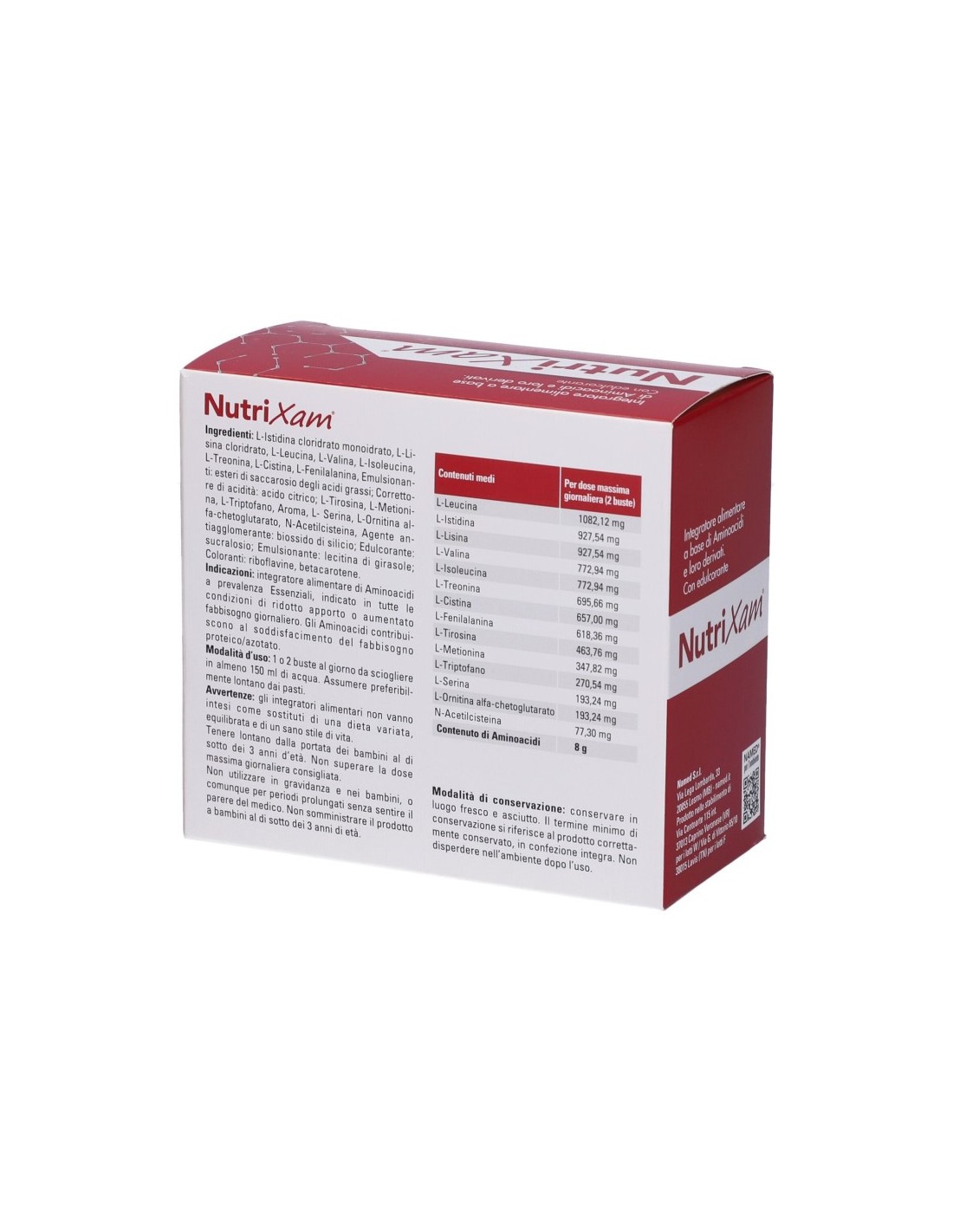 Grazie alla sua formula scientificamente studiata, NutriXam è in grado di supportare l'organismo in caso di aumentato fabbisogno organico o di carenze nutrizionali aminoacidiche per una normale sintesi proteica endogena.