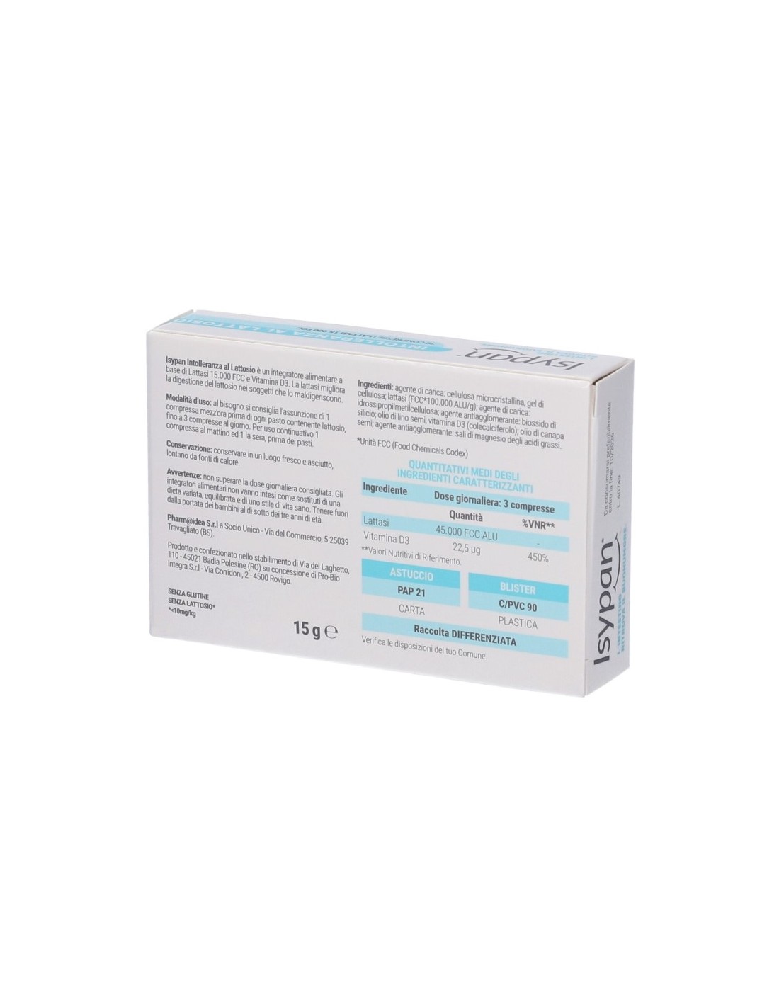 Integratore alimentare a base di lattasi 15.000 FCC e vitamina D3. La lattasi migliora la digestione del lattosio nei soggetti che maldigeriscono il lattosio.