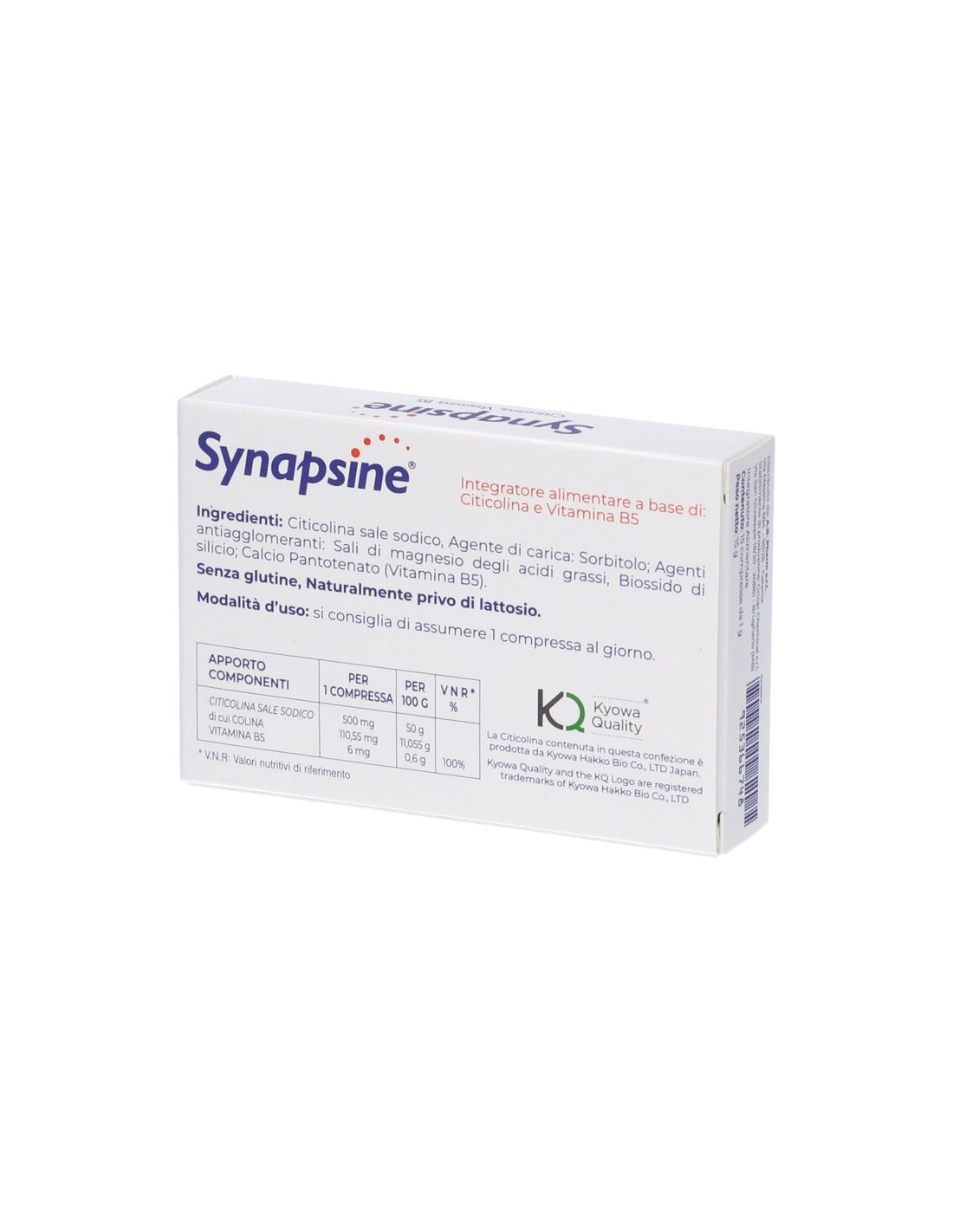 Citicolina, acido alfa-lipoico, vitamina B5.