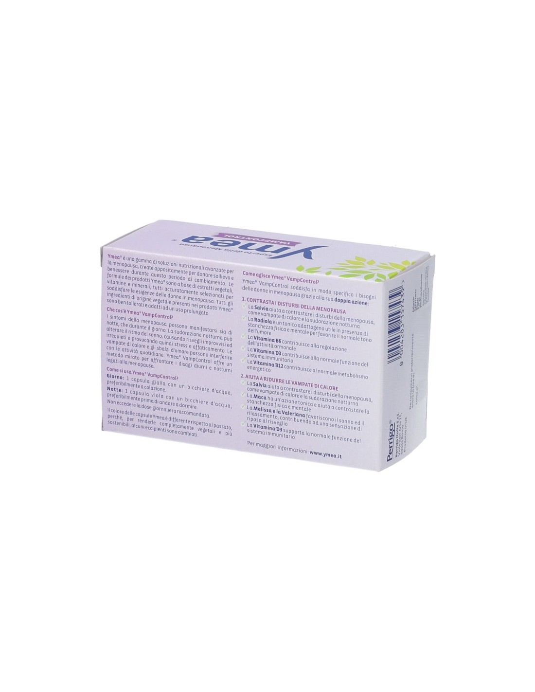 Integratore alimentare. Soddisfa in modo specifico i bisogni delle donne in menopausa grazie alla sua doppia azione. I sintomi della menopausa possono manifestarsi sia di notte, che durante il giorno. La sudorazione può alterare il ritmo del sonno, causando risvegli improvvisi e irrequieti e provocando quindi stress e affaticamento. Le vampate di calore e gli sbalzi di umore possono interferire con le attività quotidiane. Ymea VampControl offre un metodo mirato per affrontare i disagi diurni e notturni legati alla menopausa.