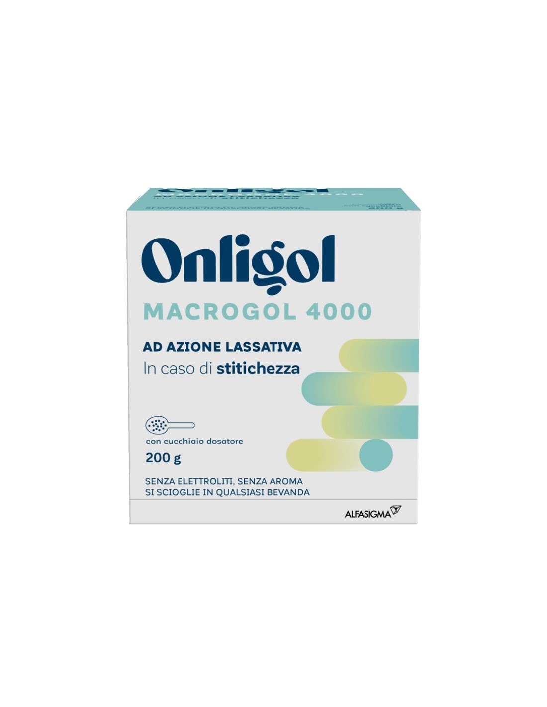 Onligol è un lassativo in polvere per soluzione orale a base di Macrogol 4000. Non contiene eccipienti, aromatizzanti e zuccheri. Si può sciogliere in qualsiasi bevanda (es. tè, tisane, latte, brodo o succo di frutta) e non ne altera il sapore.