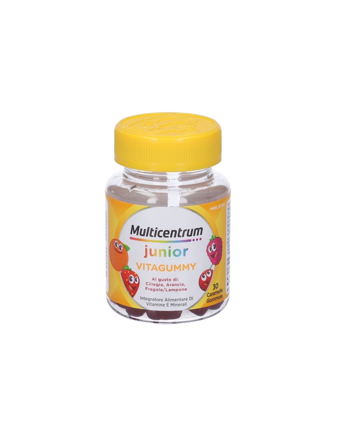 Integratore alimentare di vitamine e minerali appositamente formulato per i bambini dai 3 anni in su. La formulazione di Multicentrum VitaGummy contiene livelli ottimali di vitamina D, che contribuisce alla normale funzione del sistema immunitario, e Iodio che contribuisce alla crescita normale dei bambini.
