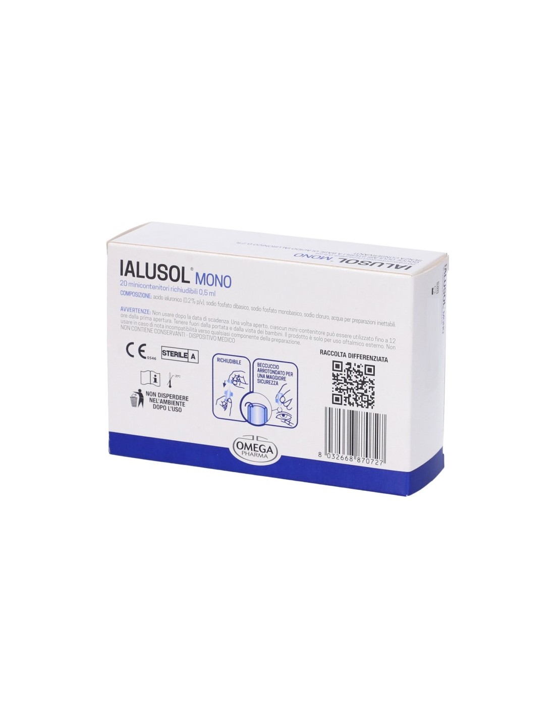 Instillare 1 o 2 gocce per occhio (anche con lenti a contatto indossate) esercitando una leggera pressione sul microcontenitore. È possibile utilizzare Ialusol mono tutti i giorni, anche più volte al giorno, secondo necessità.