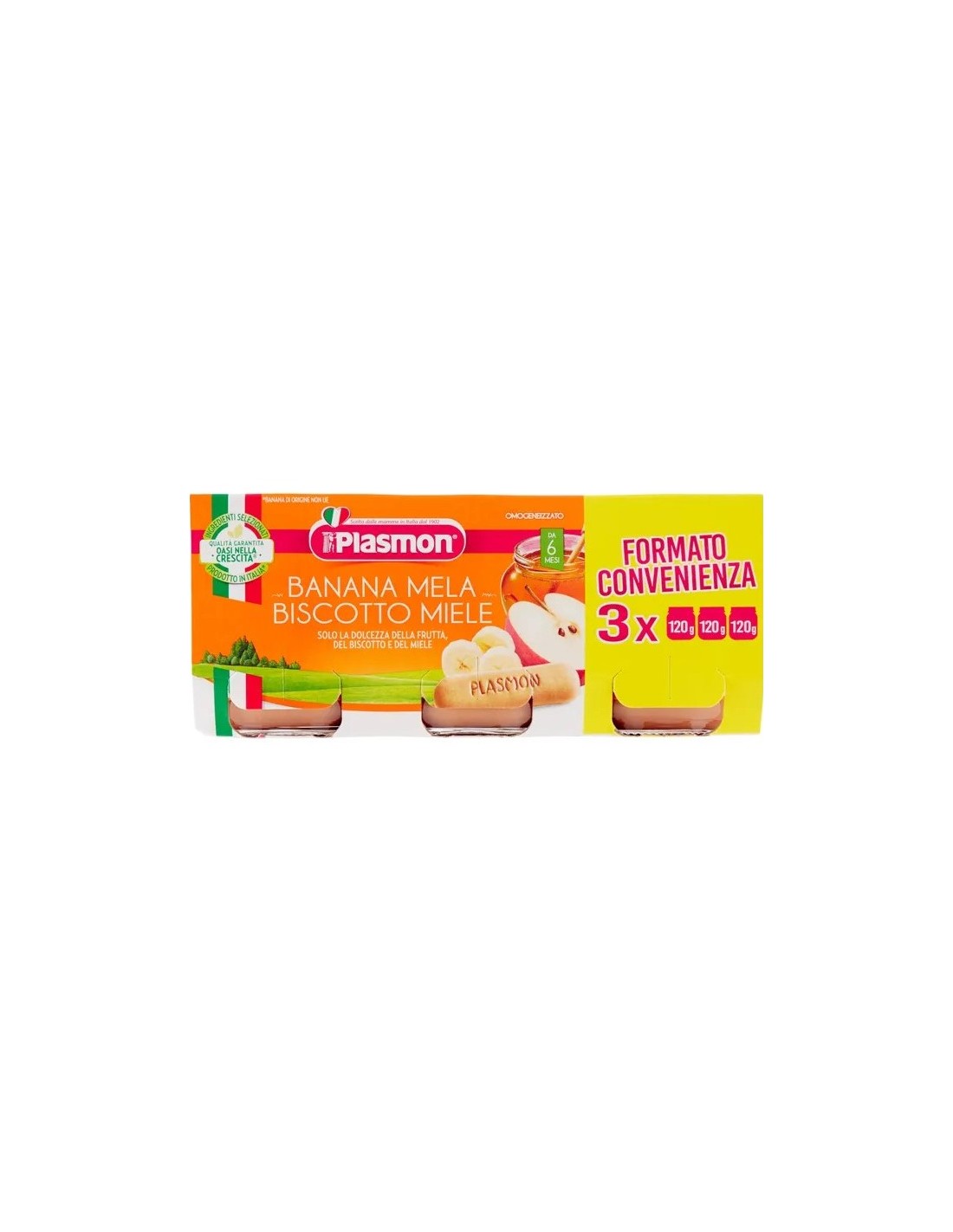 Plasmon Omogeneizzato Banana Mela Biscotto Miele 3x120g