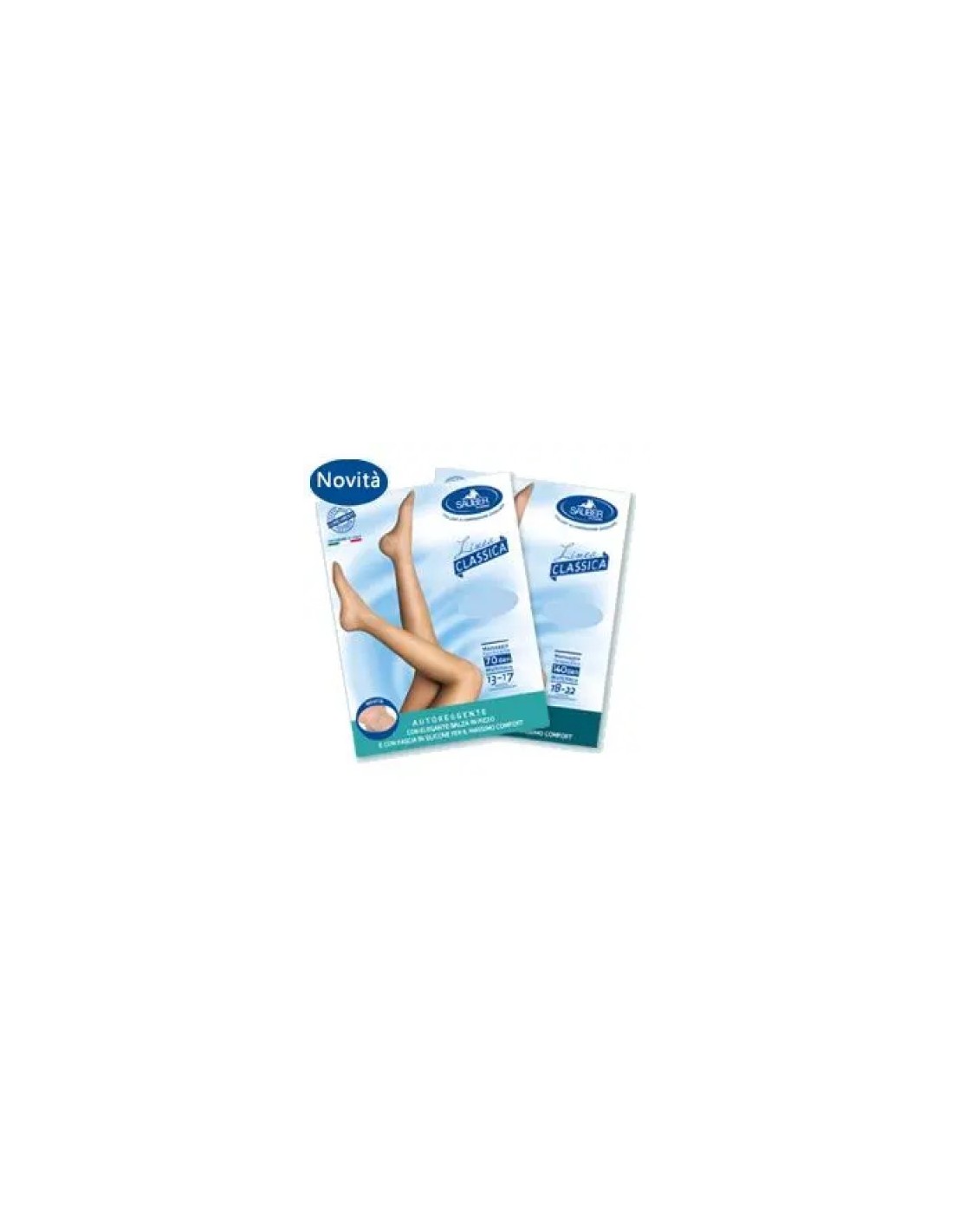 • 70 DEN 13-17 mmHg - massaggio medio tonificante: svolge un’azione tonificante delle gambe e preventiva delle varici, utile quando appaiono i primi “capillari”. Attenua la sensazione di gambe pesanti e sofferenti, riduce i gonfiori di media entità e i formicolii alle gambe.