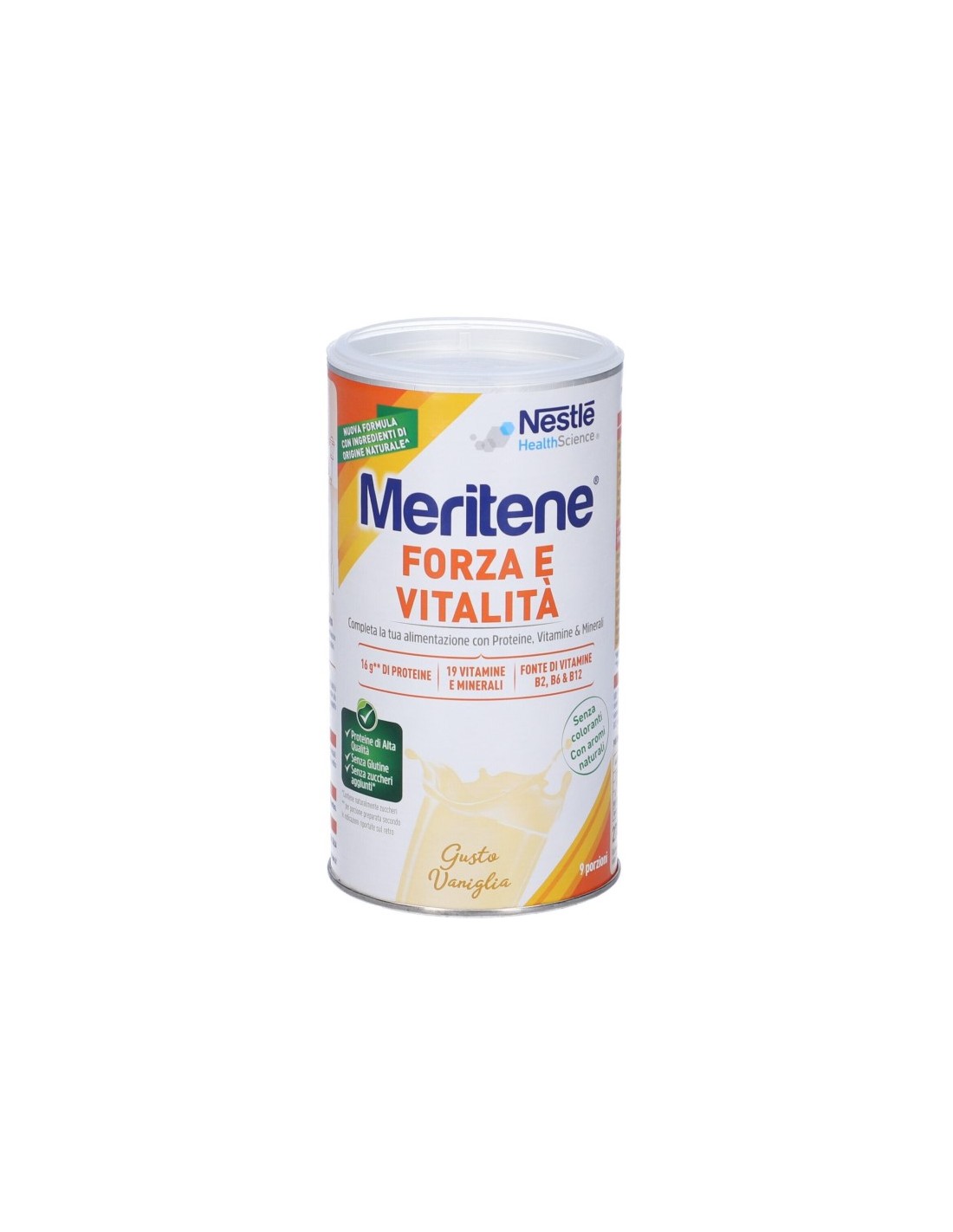 Meritene è un alimento arricchito che contiene i nutrienti ideali per recuperare le energie ed affrontare gli impegni quotidiani con più vigore grazie ad una combinazione specifica di 19 vitamine e minerali e proteine ad alto valore biologico.