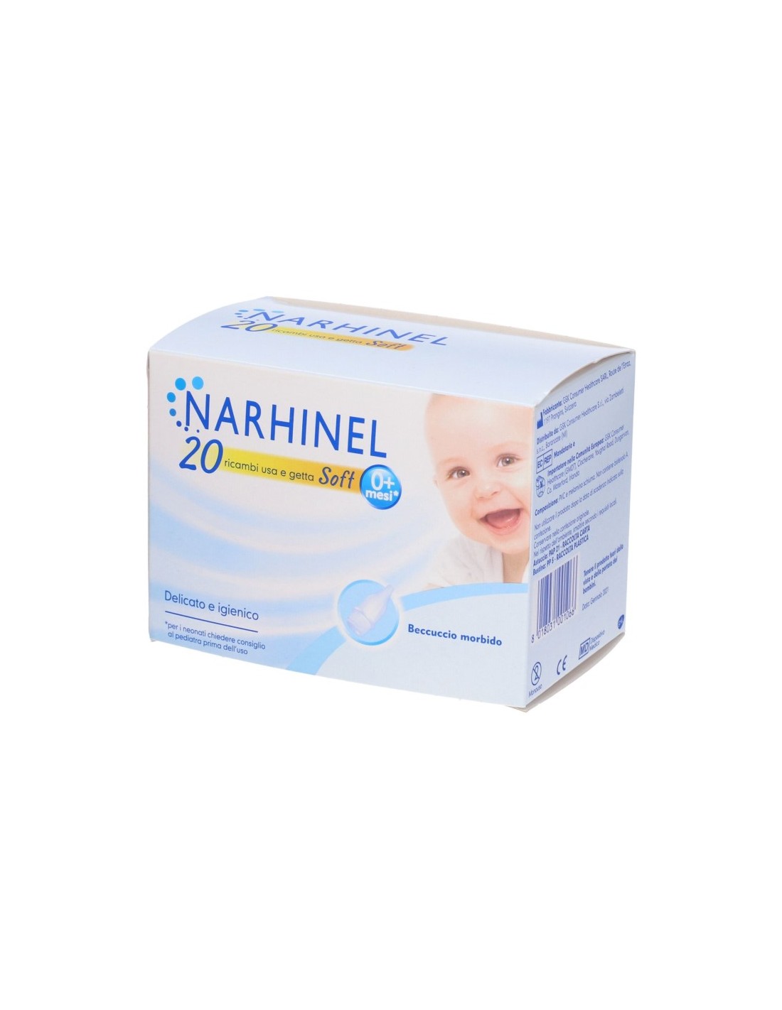 Ricambi soft usa e getta con filtro assorbente, da utilizzare con narhinel/narhinel soft aspiratore nasale, imbustati singolarmente. I ricambi in plastica morbida sono stati disegnati per adattarsi perfettamente ed in sicurezza al naso del bambino. Ogni ricambio include un filtro assorbente per trattenere il muco e garantire la massima igiene nel corso dell'aspirazione.