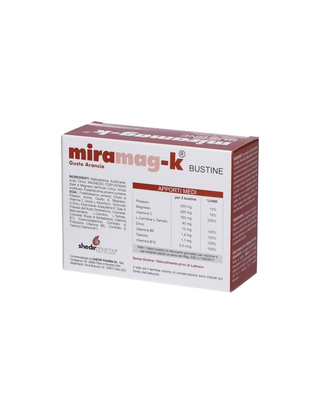 Complemento alimentare a base di Magnesio, Potassio, Vitamina C, Carnitina, Zinco, Vitamina B6, Tiamina, Vitamina B12 indicato nei casi di ridotto apporto con la dieta o di un aumentato fabbisogno di tali elementi. Grazie al Magnesio, alla Vitamina C, alla Vitamina B6 e alla Vitamina B12, contribuisce alla riduzione della stanchezza e dell’affaticamento. Grazie al Magnesio, alla Vitamina C, alla Tiamina, alla Vitamina B6 e alla Vitamina B12, contribuisce al normale metabolismo energetico. Grazie al Magnesio e al Potassio, contribuisce alla normale funzione muscolare. Grazie al Magnesio, contribuisce all’equilibrio elettrolitico. Grazie al Potassio, contribuisce al mantenimento di una normale pressione sanguigna. Grazie al Magnesio, al Potassio, alla Vitamina C, alla Tiamina e alla Vitamina B6, contribuisce al normale funzionamento del Sistema nervosa. Grazie alla Vitamina C e allo Zinco, contribuisce alla protezione delle cellule dallo stress ossidativo.
