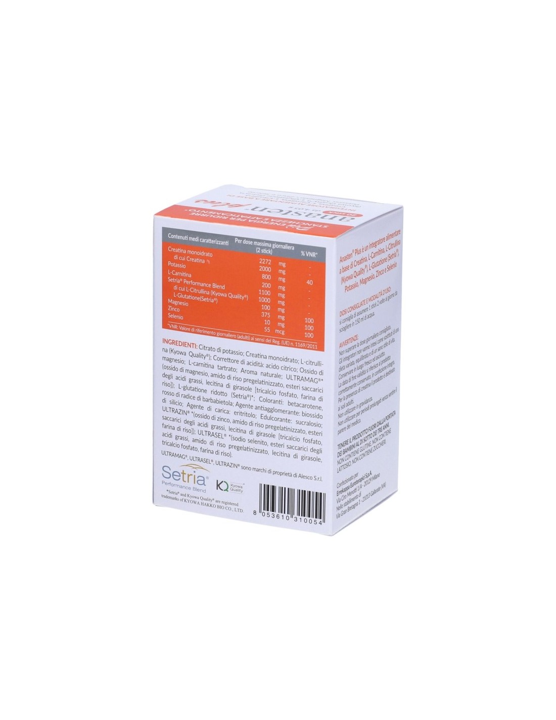 Citrato di potassio monoidrato, L-citrullina, acidificante: acido citrico; ossido di magnesio, L-carnitina tartrato, aroma, UltraMag [(ossido di magnesio, amido di riso pregelatinizzato, esteri saccarici degli acidi grassi, lecitina di girasole tricalcio fosfato, farina di riso)], setria glutatione, agente antiagglomerante: biossido di silicio; colorante: betacarotene; agente di carica: eritritolo; edulcorante: sucralosio; UltraZin (ossido di zinco, amido di riso pregelatinizzato, esteri saccarici degli acidi grassi, lecitina di girasole [tricalcio fosfato, farina di riso)], UltraSel [(amido di riso pregelatinizzato, esteri saccarici degli acidi grassi, sodio selenito, lecitina di girasole (tricalcio fosfato, farina di riso)]. Senza glutine, senza lattosio, senza zuccheri.