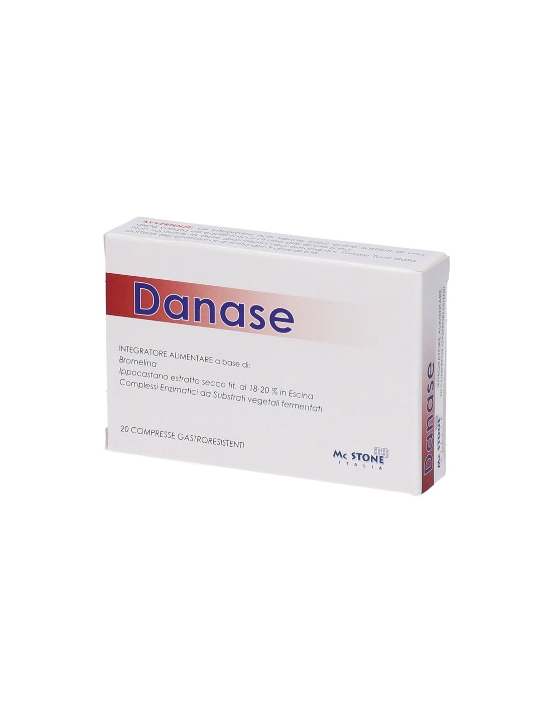 Danase è un integratore Antinfiammatorio in compresse. Grazie ai principi attivi: Maltodestrine fermentate da Serratia, Bromelina ed Escina, ha effetto Antiedemigeno, Drenante.