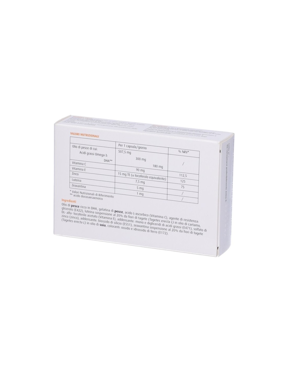 - Contenuto: olio di pesce; vitamina C; glicerolo monostearato (addensante); luteina; vitamina E naturale; zinco solfato; silice colloidale anidra (addensante); zeaxantina.