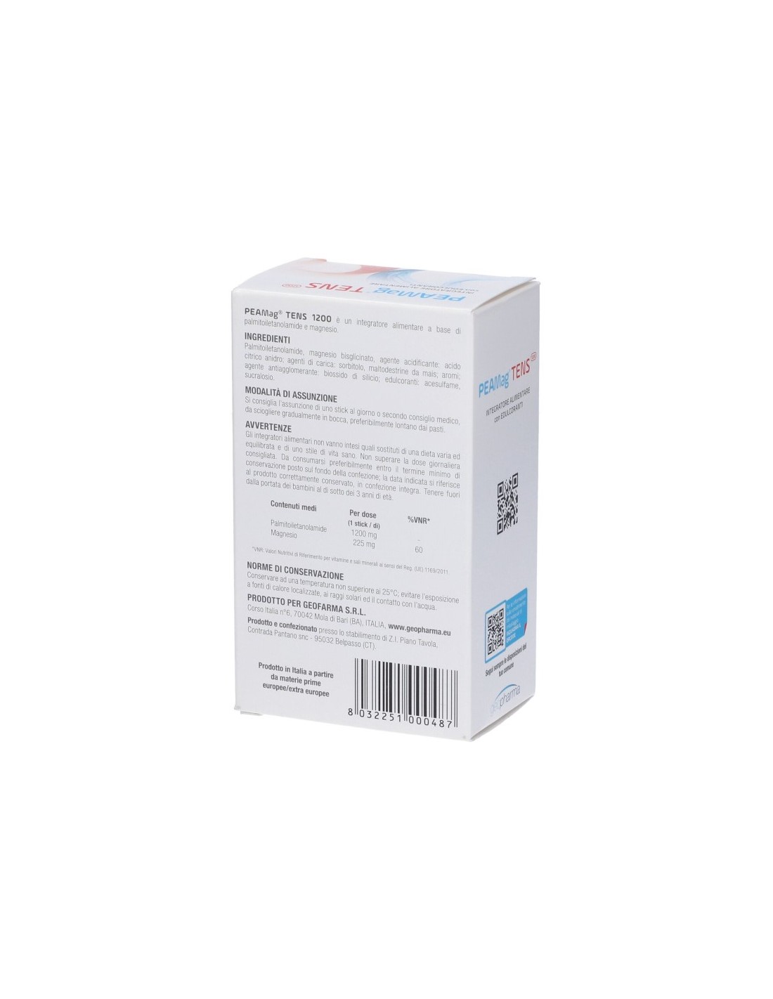 Palmitoiletanolamide, magnesio bisglicinato; agente acidificante: acido citrico anidro; agenti di carica: sorbitolo, maltodestrine da mais; aromi; agene antiagglomerante: biossido di silicio; edulcoranti: acesulfame, sucralosio.