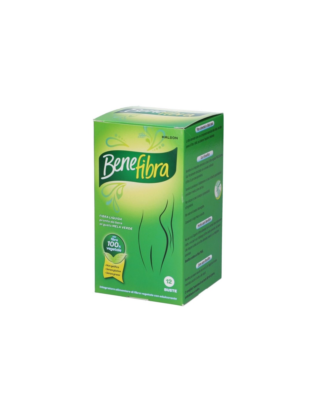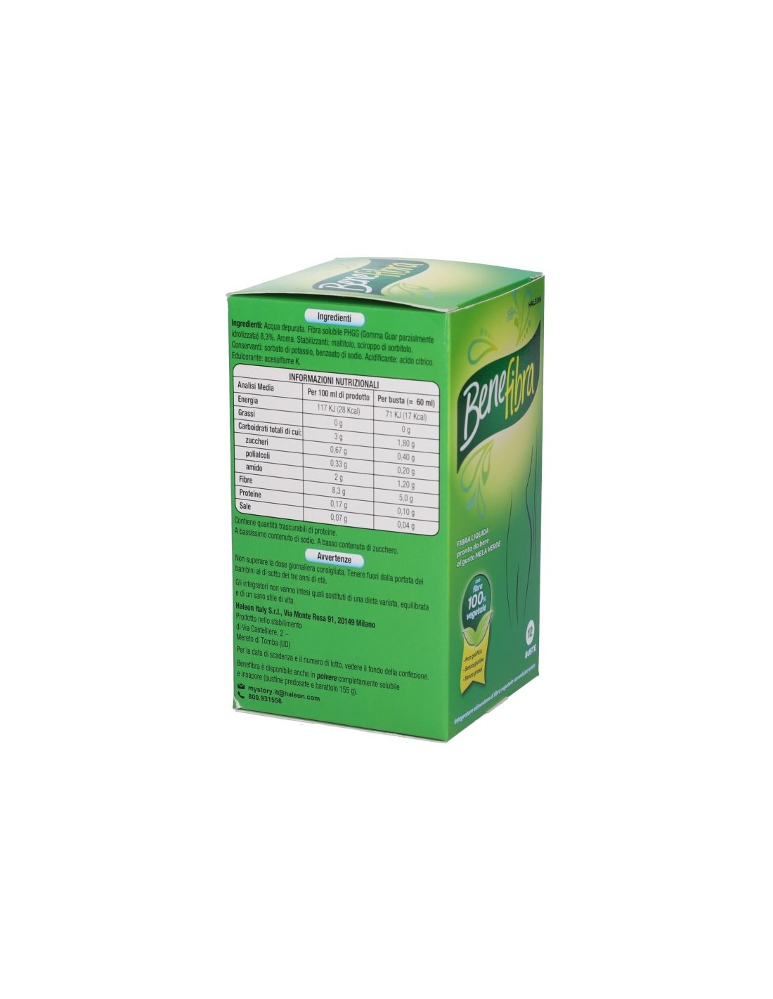 Benefibra è un integratore alimentare a base di fibra vegetale PHGG (gomma Guar parzialmente idrolizzata) con un elevato contenuto di fibra (5 g per dose giornaliera), che favorisce l'equilibrio della flora batterica intestinale.