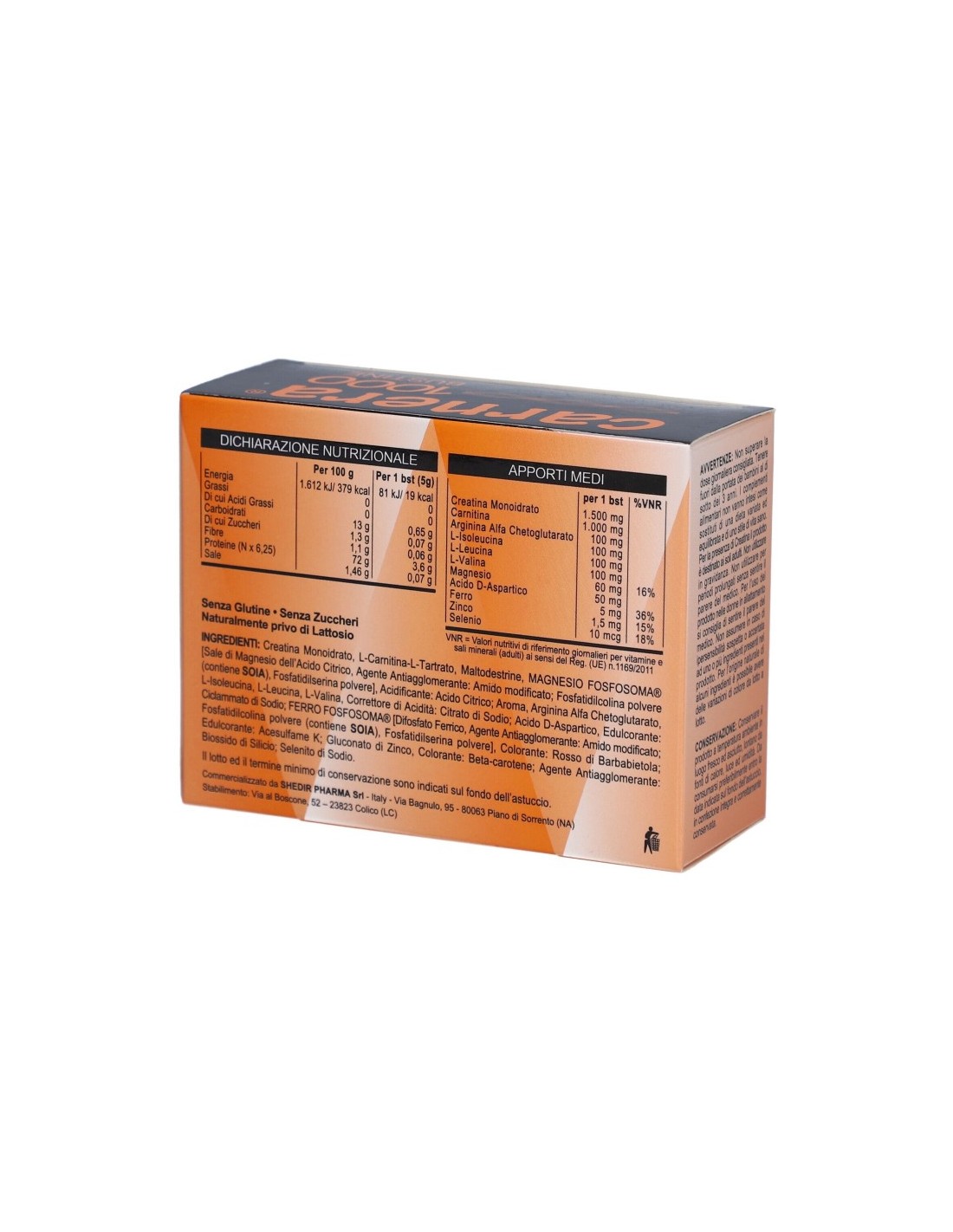 Integratore di creatina, carnitina e arginina. Con edulcoranti
