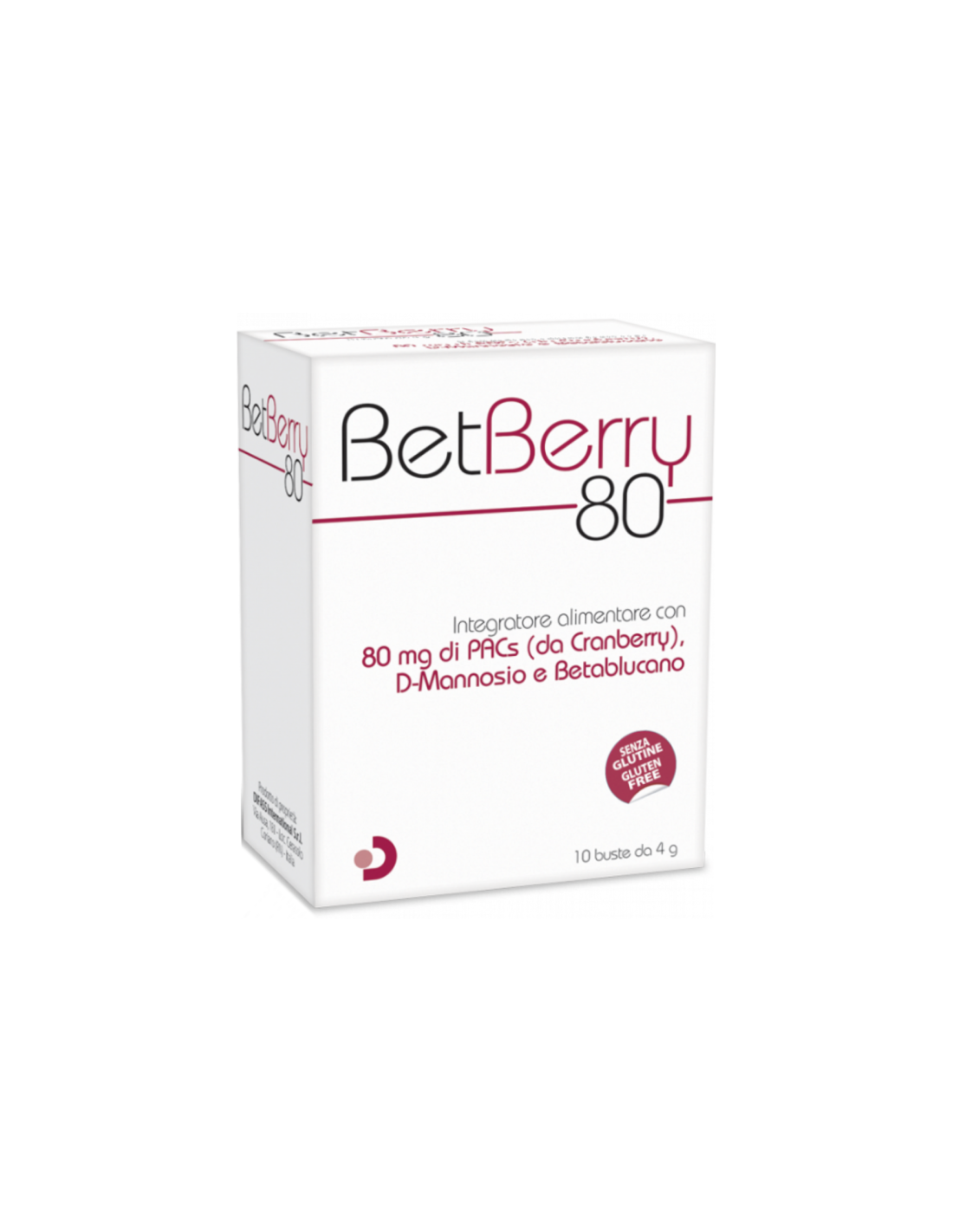 Betberry 80 è un integratore alimentare a base di Cranberry (Vaccinium macrocarpum) titolato al 40% in Proantocianidine (PACs 80 mg), D-Mannosio e Betaglucano.