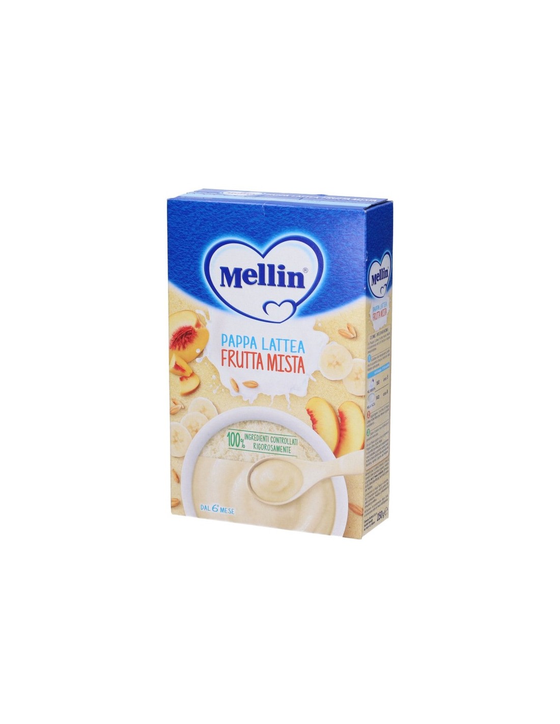 farina di frumento precotta e idrolizzata enzimaticamente; latte di proseguimento; ferro lattato; potassio cloruro; rame solfato; zinco solfato; potassio ioduro); zucchero; frutta disidratata (mele, banane, albicocche); proteine del latte; amido di mais; calcio lattato; potassio cloruro; vitamine (C; niacina; E; acido pantotenico; B2; B6; B1; A; acido folico; biotina; D3; B12);