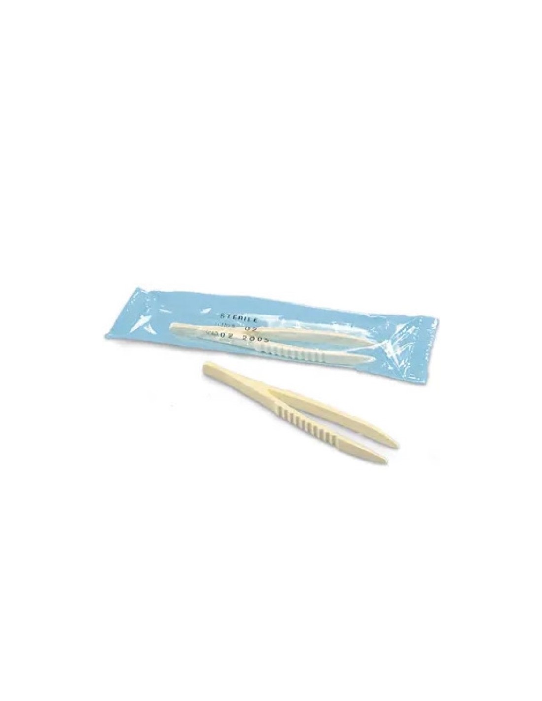Pinzetta in materiale plastico sterile monouso, ideale per interventi medici d'urgenza. Il prodotto è obbligatorio nelle cassette di pronto soccorso.