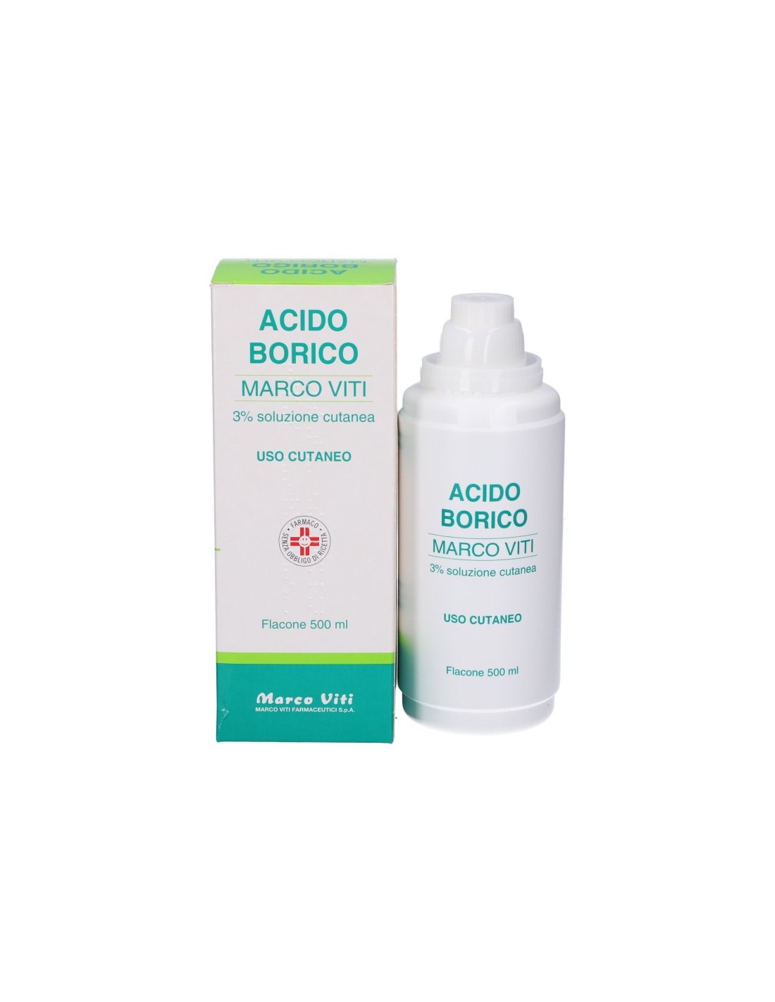 Antisettico per la disinfezione di ustioni minori e di aree cutanee irritate o screpolate; la soluzione si utilizza, inoltre, sottoforma di tamponi locali ad azione decongestionante; l'acido borico e' indicato come antibatterico per il trattamento dell'acne.