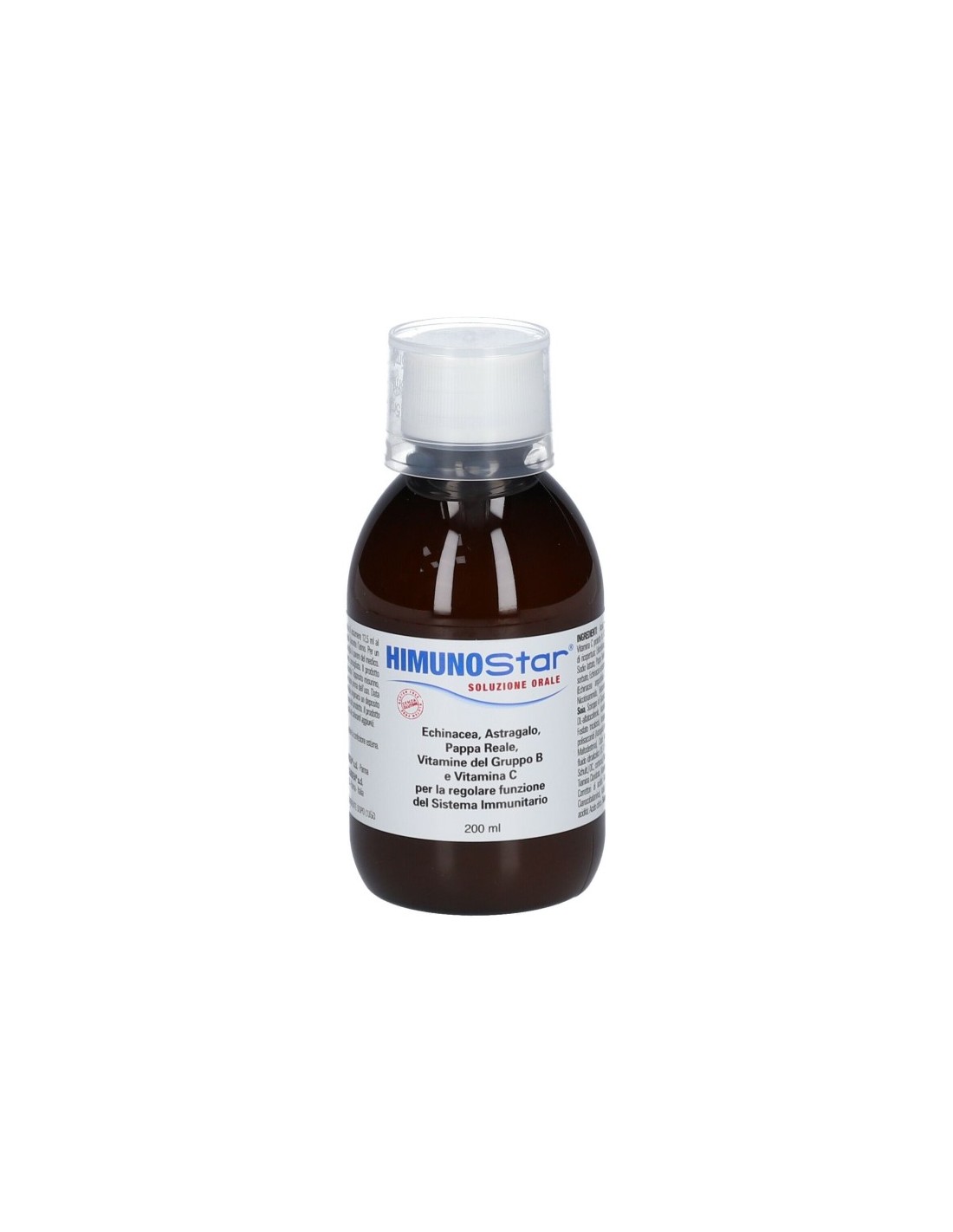 Acqua, fruttosio, miele d'acacia, vitamina C protetta tit. 97,5% (acido ascorbico; agente di rivestimento: etilcellulosa), aroma; correttore di acidità: sodio lattato; pappa reale fresca; conservante: potassio sorbato; echinacea e.s. tit. 0,6% in echinacoside (Echinacea angustifolia DC. radice, maltodestrine), nicotinammide, betacarotene tit. 10% (emulsionante: ottenilsuccinato di amido e sodio; sciroppo di glucosio, betacarotene, trigliceridi a catena media; antiossidante: DL-alfatocoferolo; agente antiagglomerante: fosfato tricalcico), astragalo e.s. tit. 16% in polisaccaridi (Astragalus membranaceus Bung. radice, maltodestrine); correttore di acidità: acido citrico; calcio pantotenato, vitamina D3 (saccarosio; addensante: gomma di acacia; amido di mais, trigliceridi a media catena, colecalciferolo; antiossidante: alfa-tocoferolo), uncaria estratto fluido idroalcolico D/E 1:1 (Uncaria tomentosa Willd. DC. corteccia), piridossina cloridrato, tiamina cloridrato, riboflavina, vitamina B12 tit. 0,1% (maltodestrine; correttori di acidità: acido citrico, citrato trisodico; cianocobalamina), acido folico, biotina.