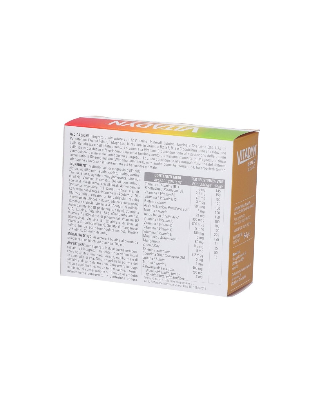 Integratore alimentare di Vitamine, Minerali, Luteina, Taurina e Coenzima Q10. L'Acido Pantotenico, l'Acido Folico, il Magnesio, la Niacina, le vitamine B2, B6, B12 e C contribuiscono alla riduzione della stanchezza e dell'affaticamento. La Biotina, la Vitamina A e lo Zinco aiutano a mantenere la pelle in buono stato. Lo Zinco e la Vitamina C proteggono le cellule dallo stress ossidativo e favoriscono il buon funzionamento del sistema immunitario. Il Magnesio, il Manganese e la Vitamina D3 aiutano a mantenere ossa sane. Il Ginseng indiano (Withania somnifera) è una pianta dalle proprietà tonico adattogene e favorisce il rilassamento e il benessere mentale.