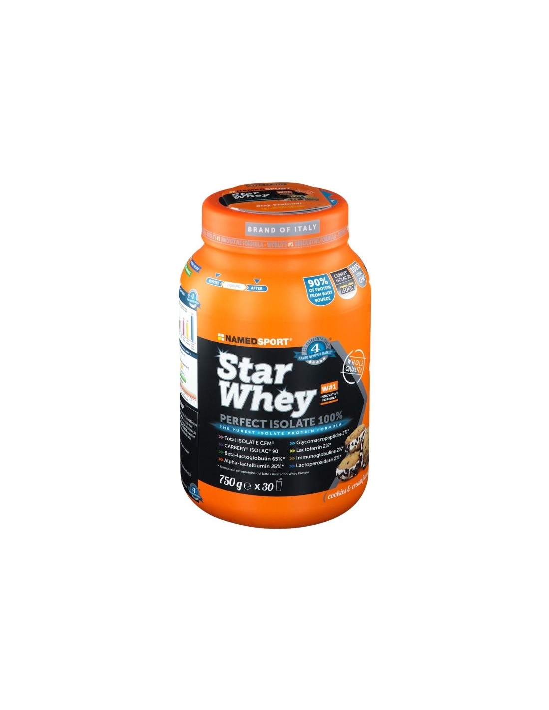 Formulazione a base di proteine del siero del latte isolate CARBERY Isolac 90, ottenute per microultrafiltrazione a doppio flusso incrociato (Cross-Flow-Micro-filtration – CFM), che si distinguono per grado di purezza. Il particolare processo estrattivo consente di ottenere un prodotto di elevato valore biologico (119) dal completo profilo aminoacidico. Star Whey è arricchito con l’esclusiva formulazione brevettata Named 4 Protein Matrix, a base di proteasi, estratto di fieno greco e colostro bovino.