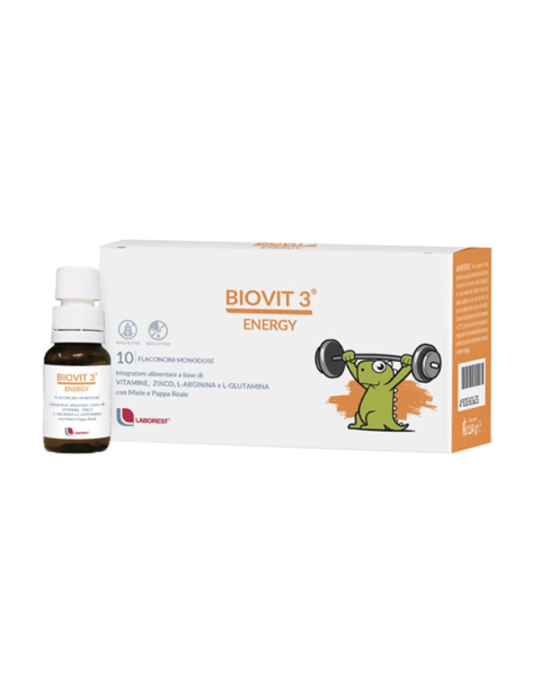 Biovit 3 Energy è utile nei casi di aumentato fabbisogno di vitamine, zinco e aminoacidi quali: L-arginina e L-glutamina, con miele e pappa reale.