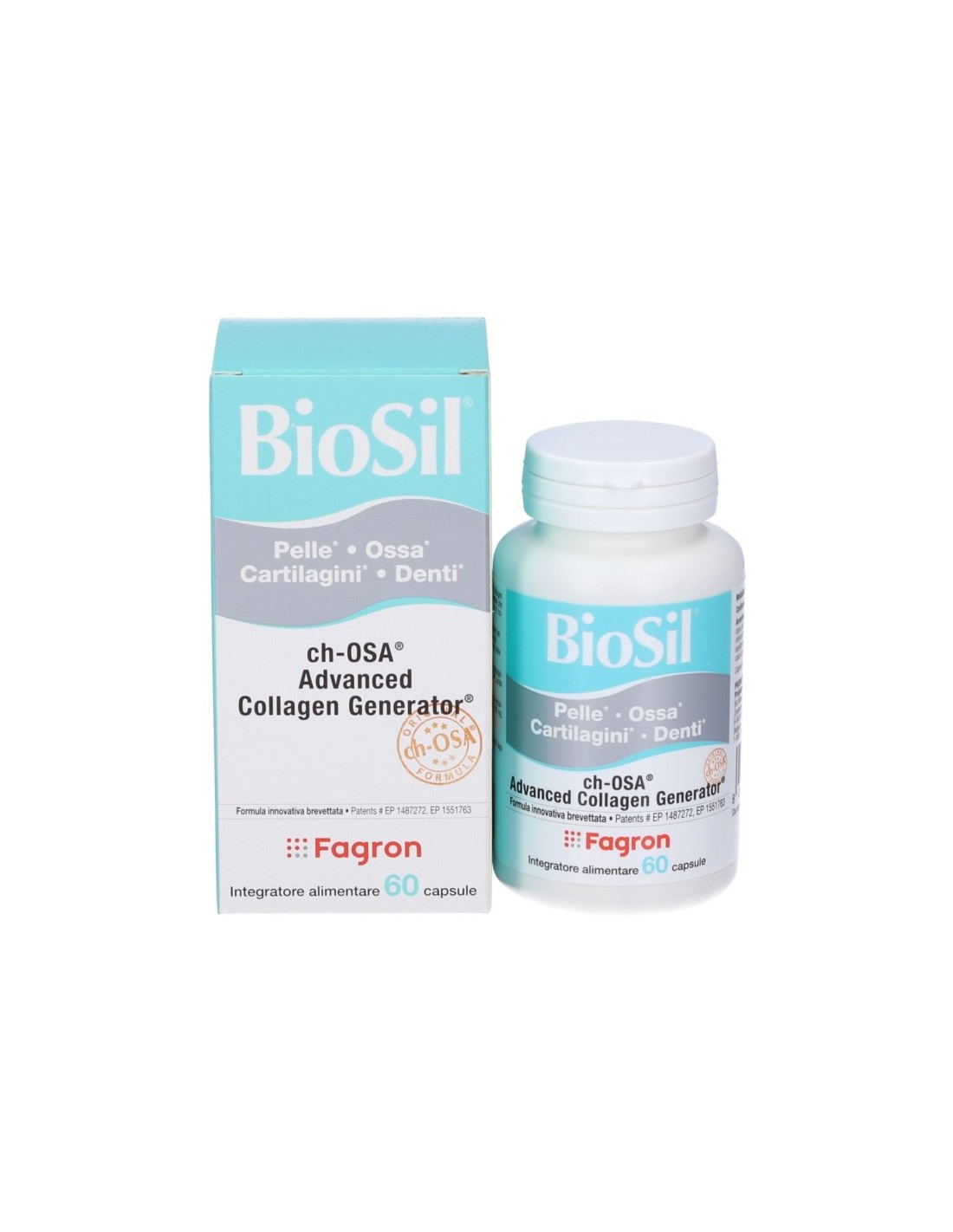 Biosil, grazie alla sua formulazione, stimola la produzione di collagene fondamentale per la crescita, e rigenerazione di capelli, unghie, pelle, cartilagine, ossa e tessuti connettivi.